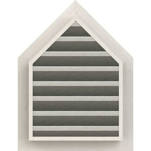 20"W x 24"H Peaked Top Gable Vent (25"W x 29"H Frame Size) 13/12 Pitch: Primed, Functional, Smooth Pine Gable Vent w/ 1" x 4" Flat Trim Frame