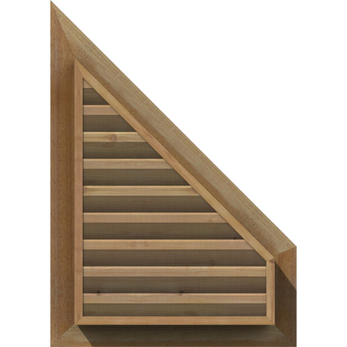 12"W x 32"H Half Peaked Top Left (17"W x 37"H Frame Size) 7/12 Pitch: Unfinished, Functional, Rough Sawn Western Red Cedar Gable Vent w/ Brick Mould Face Frame