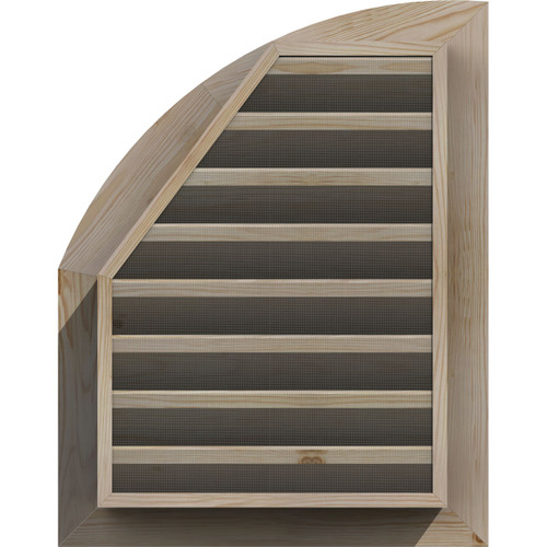 06"W x 28"H Quarter Round Top Right (11"W x 33"H Frame Size): Unfinished, Functional, Smooth Pine Gable Vent w/ 1" x 4" Flat Trim Frame